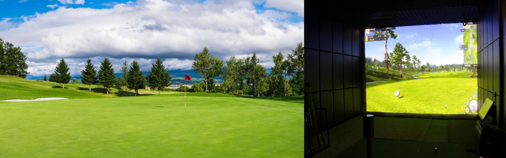 風や距離、ライ角などの細かな条件を再現し、まるで本物のゴルフ場でプレーしているかのようなリアルなゴルフを室内で体験できます。